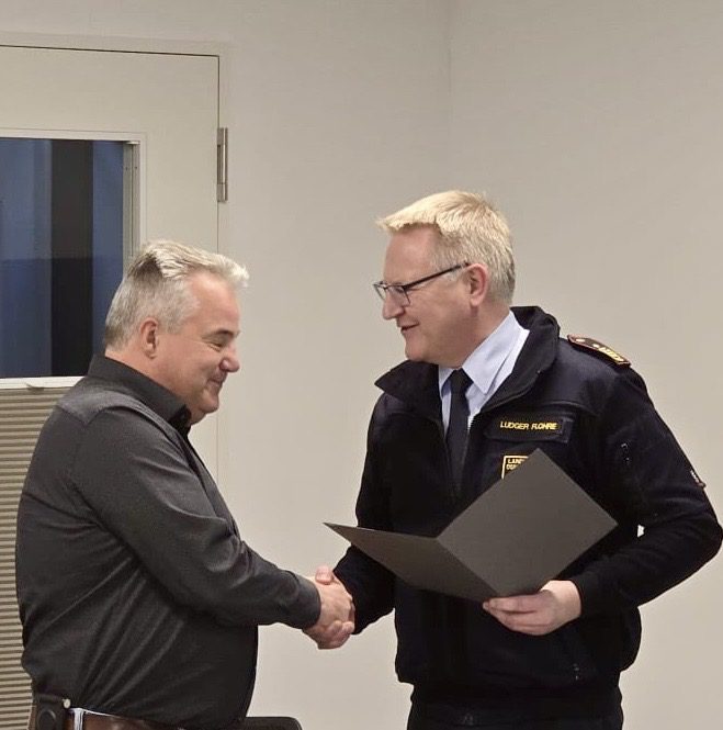 Eckl war über viele Jahre eine prägende Persönlichkeit innerhalb des Fachzugs. Nach seiner Zeit als Gruppenführer und später als stellvertretender Zugführer übernahm er schließlich die Verantwortung für die hochspezialisierte und technisch anspruchsvolle Einheit. Unter seiner Leitung wurden zahlreiche Einsätze im Bereich der Gefahrenabwehr von chemischen, biologischen und radiologischen Stoffen erfolgreich koordiniert. Kreisbrandmeister Ludger Flohre Für seine Verdienste und die langjährige Mitarbeit überreichte Kreisbrandmeister Flohre die Entlassungsurkunde zum 31. Dezember 2025 und sprach Eckl seinen ausdrücklichen Dank für die geleistete Arbeit aus.