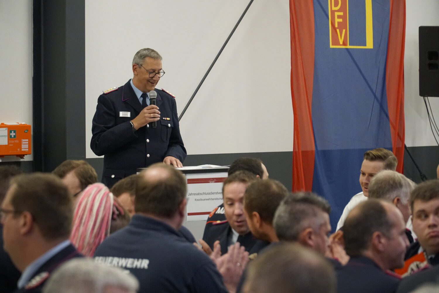 Bad Iburg, 25. Oktober 2025. In einer gut besuchten Jahresabschlussdienstversammlung der Kreisfeuerwehrbereitschaft (KFB) Süd blickten Führung und Einsatzkräfte auf das Jahr zurück, zeichneten verdiente Kameradinnen und Kameraden aus und stellten die Weichen für die Zukunft.