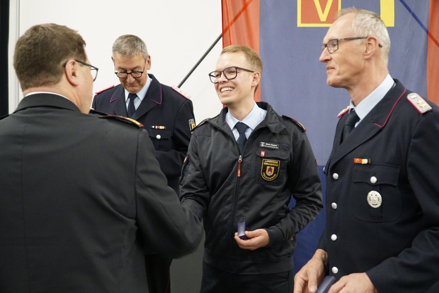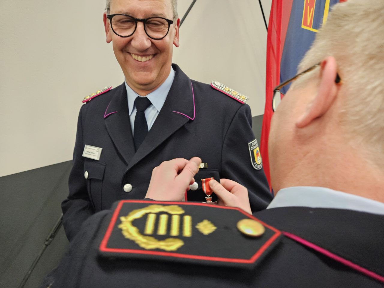 Zum Auftakt wurden zahlreiche Einsatzkräfte für ihren überdurchschnittlichen Hochwasser-Einsatz rund um die Jahreswende 2023/2024 ausgezeichnet. Die Hochwasser-Ehrennadel des Landes Niedersachsen 2023 wurde im Rahmen der Versammlung gesammelt überreicht. Die Auszeichnung übergaben Kreisbrandmeister Ludger Flohre, Regierungsbrandmeister Matthias Röttger sowie Fachdienstleiter Volker Trunt vom Landkreis Osnabrück.