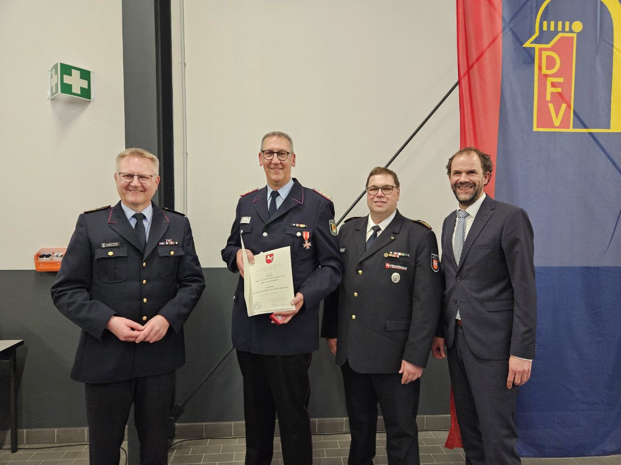 Für sein langjähriges, herausragendes Engagement erhielt Michael Räther das Silberne Feuerwehr-Ehrenzeichen am Bande des Landes Niedersachsen. Die Versammlung würdigte damit seinen beispiellosen Einsatz für die Kreisfeuerwehrbereitschaft und den Bevölkerungsschutz im Landkreis.