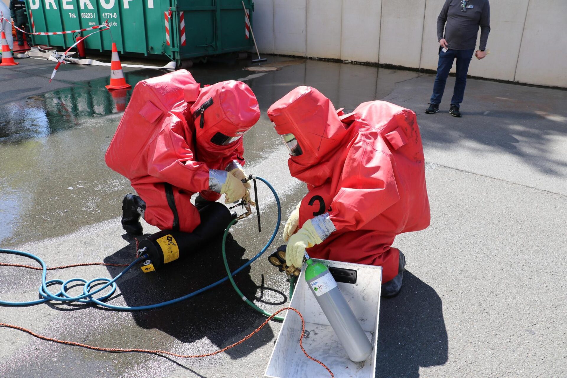 Des weiteren erfordert solche Einsätze spezielle Kenntnisse und Fertigkeiten. Die für diesen Aufgabenbereich vorgesehenen Feuerwehrmitglieder sind gesondert ausgebildet und unterwiesen worden.