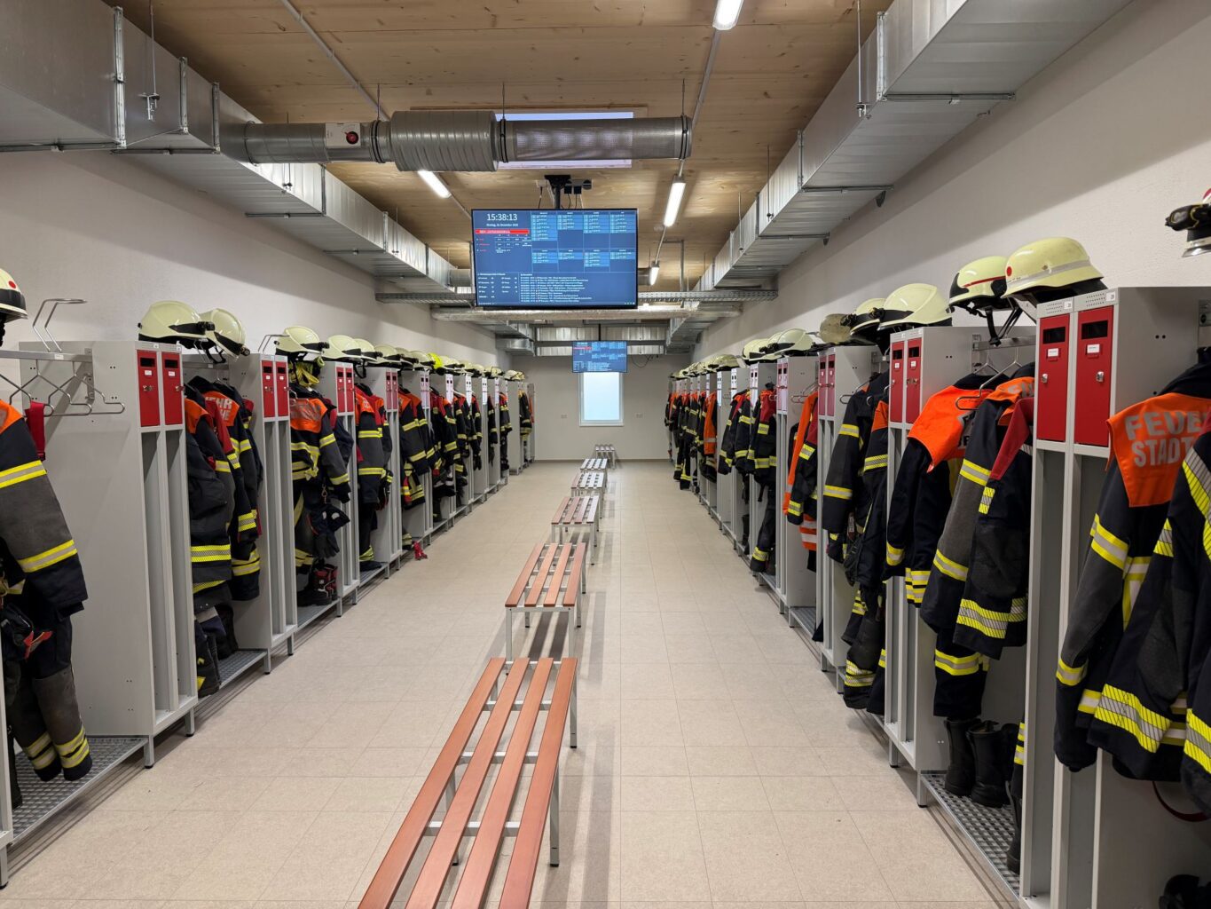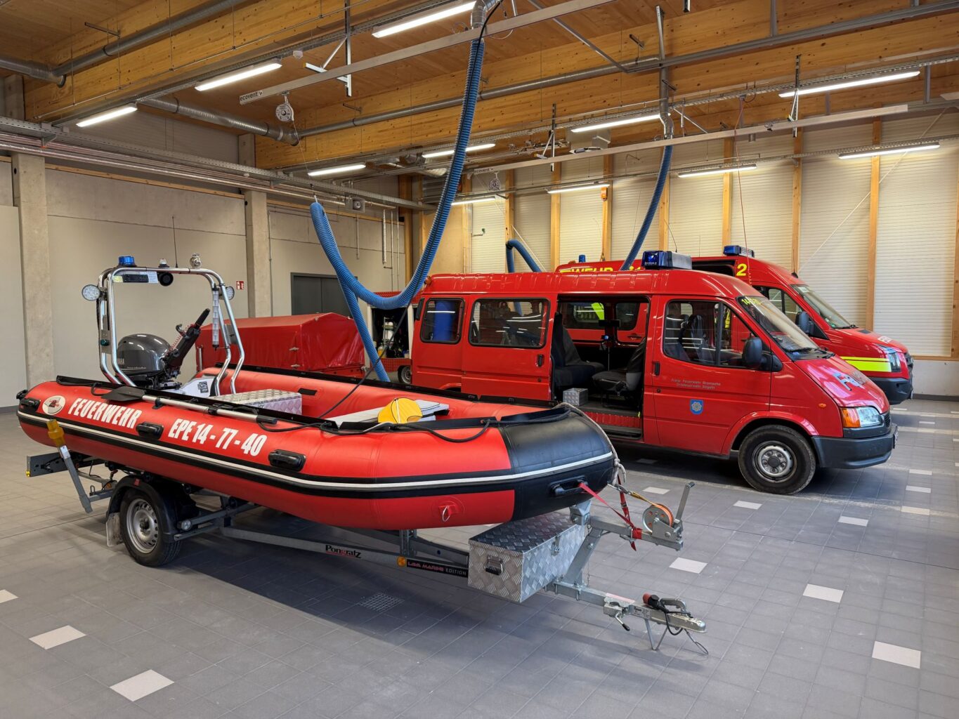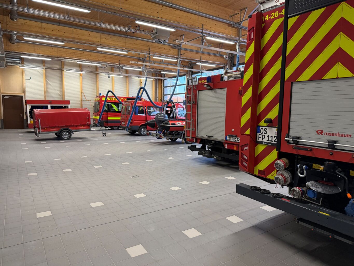 Das neue Feuerwehrhaus verfügt über eine moderne Lüftungsanlage, getrennte Umkleidekabinen mit Duschmöglichkeiten sowie eine großzügige Fahrzeughalle mit fünf Stellplätzen. Ergänzt wird die Ausstattung durch eine Werkstatt, eine separate Werkstatt für die Wasserrettung, einen Trocknungsraum für die Wasserrettung, Büroräume, einen Schulungsraum, einen Besprechungsraum sowie eine Teeküche. Auf dem Dach wurde zudem eine Photovoltaikanlage installiert.